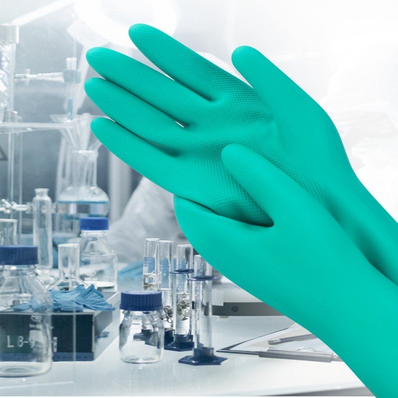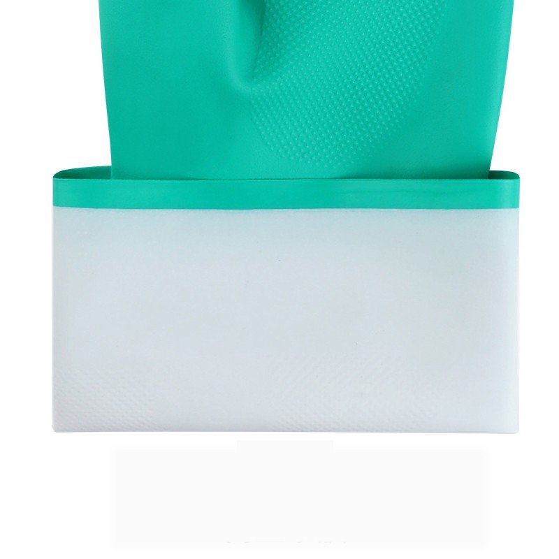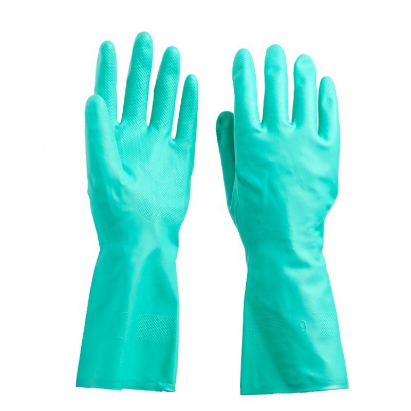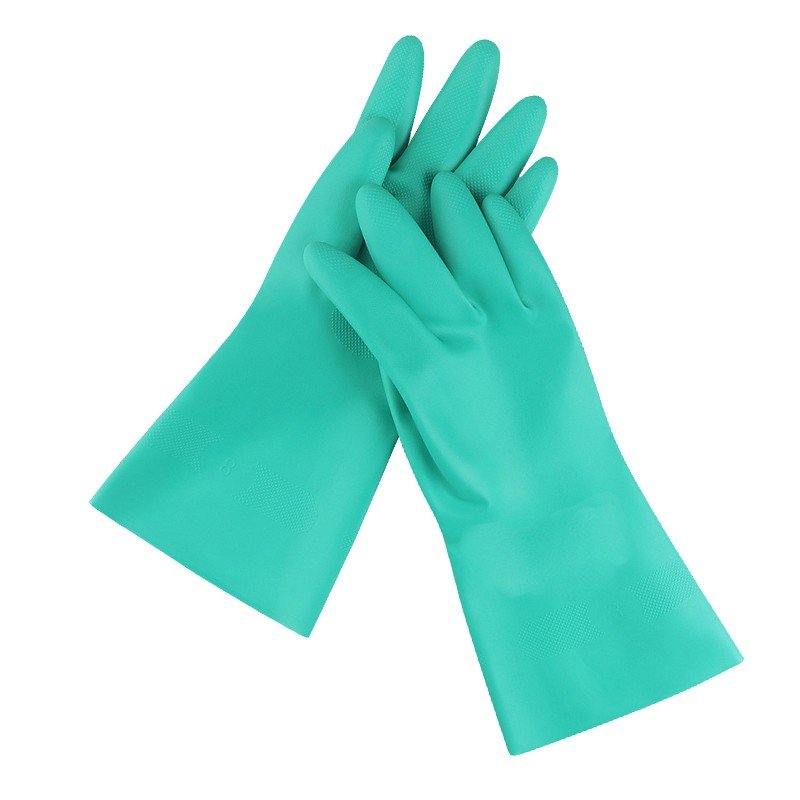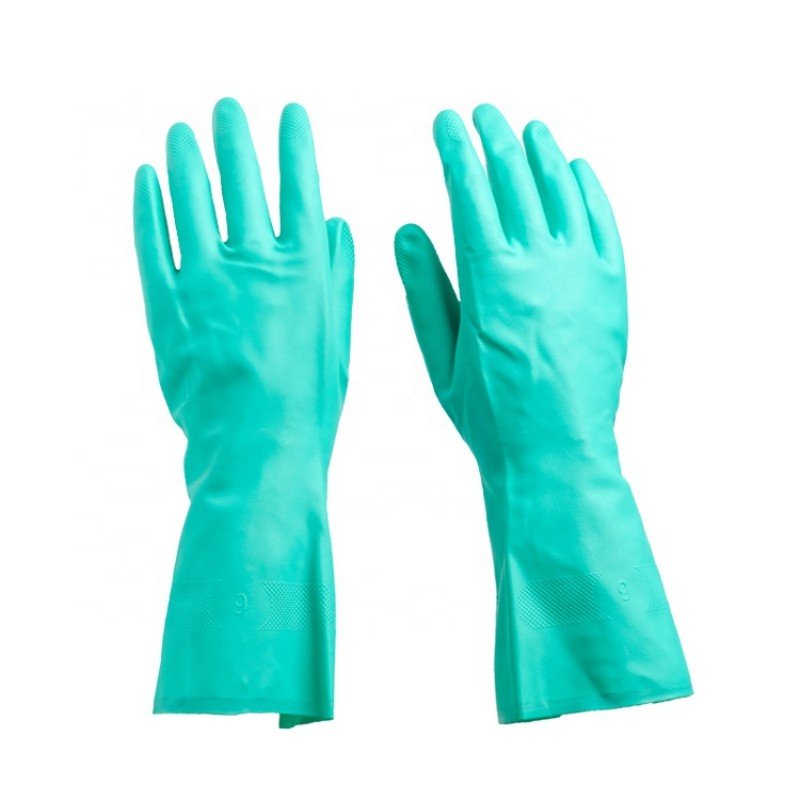 Green nitrile material provides reliable protection against oils, acids, and various industrial chemicals.