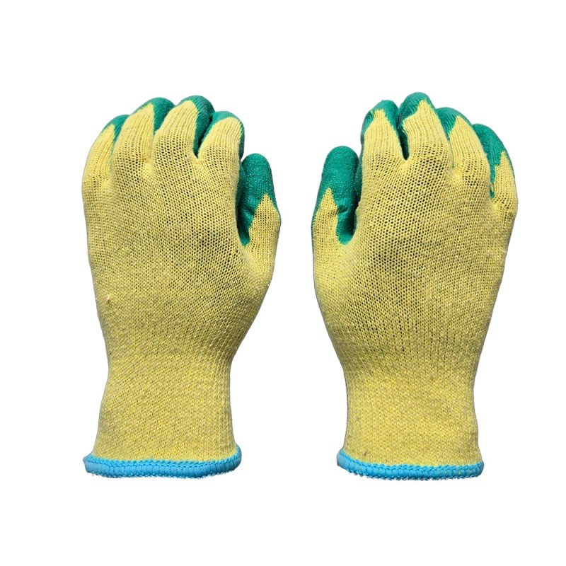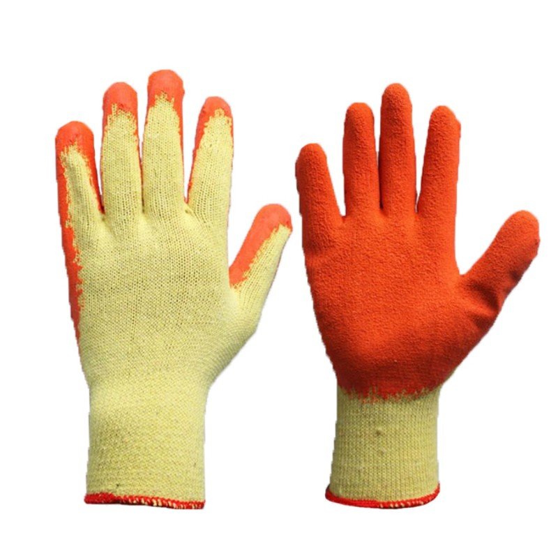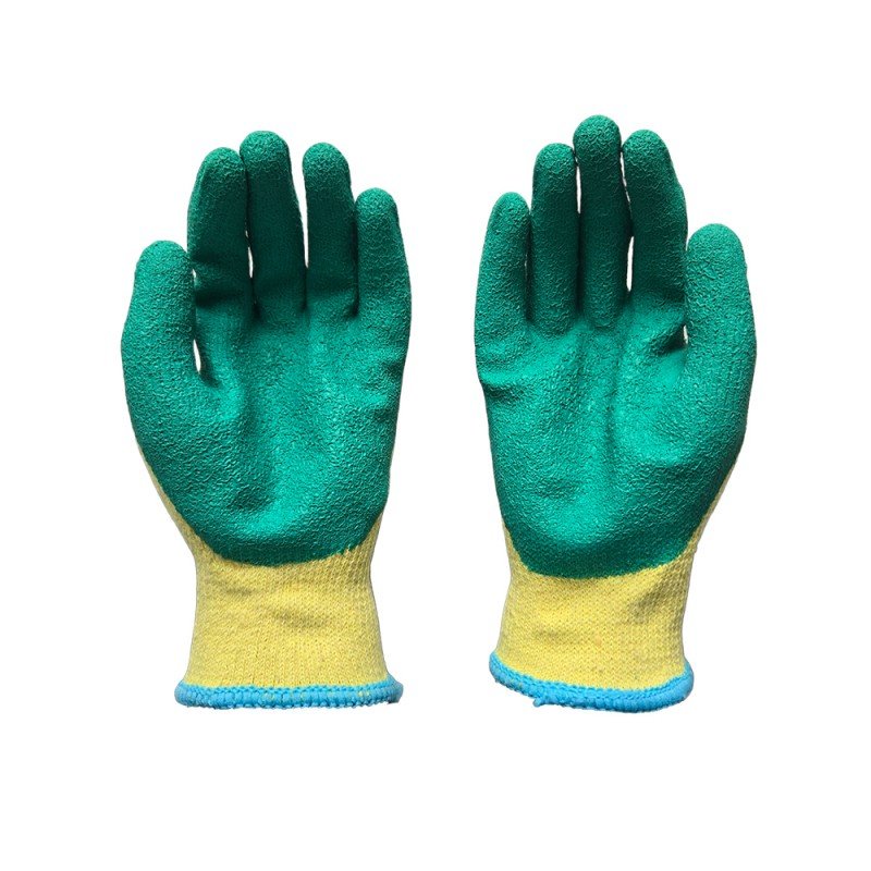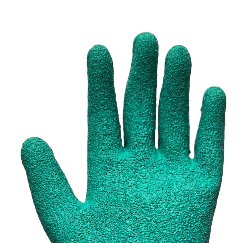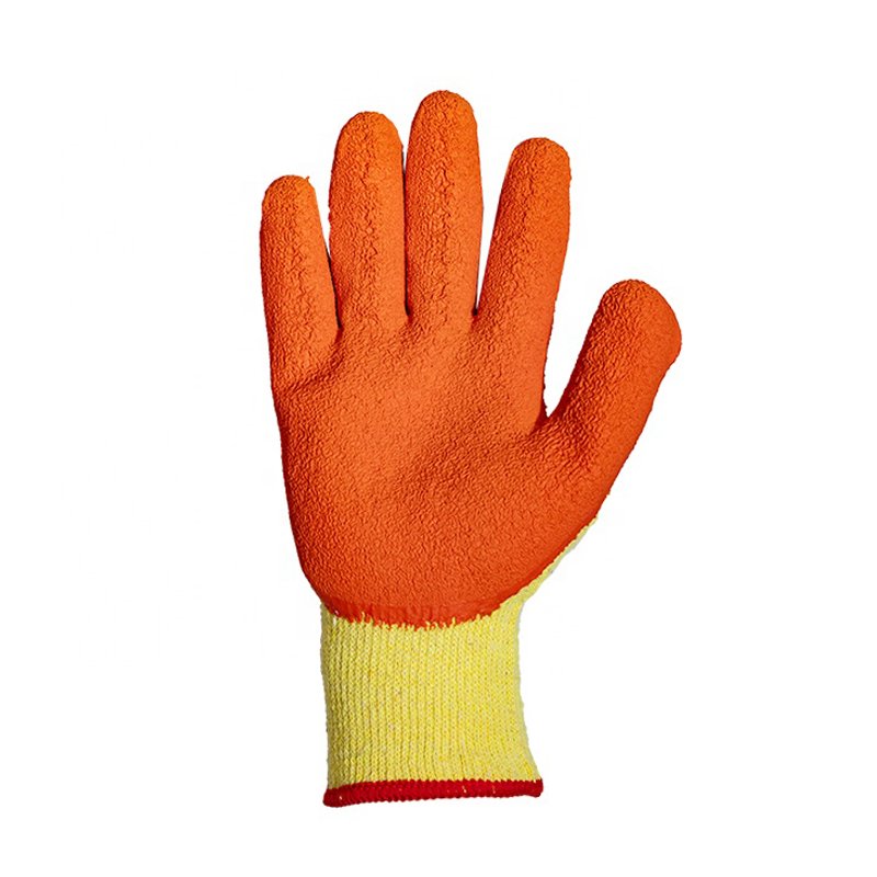 Crinkled latex palm coating provides reliable traction and secure handling of dry tools and materials.