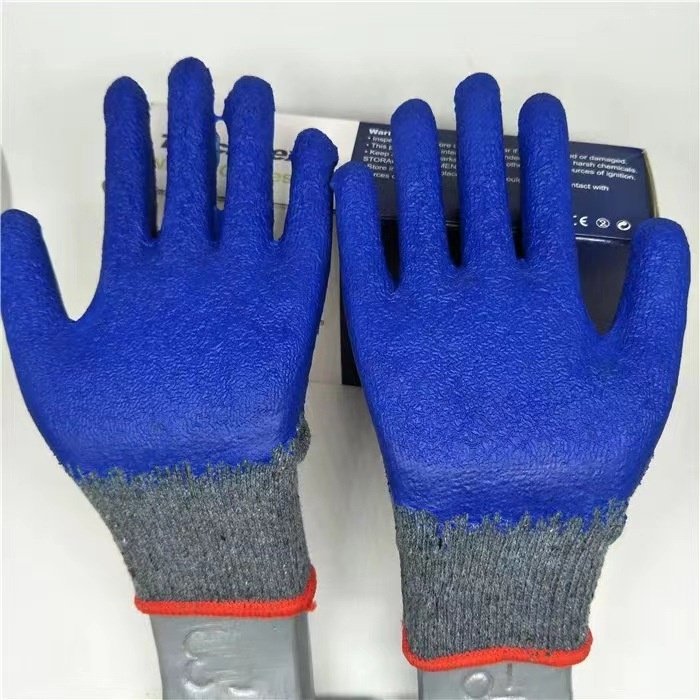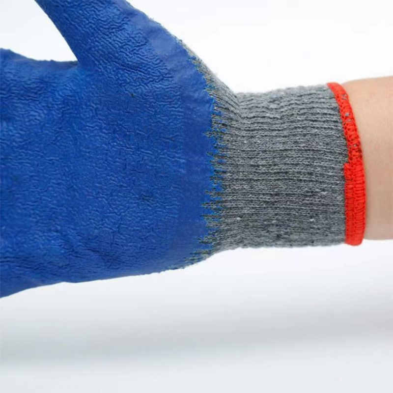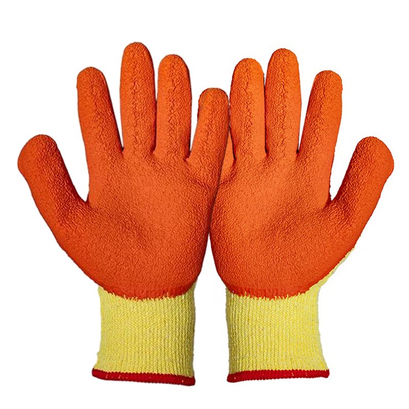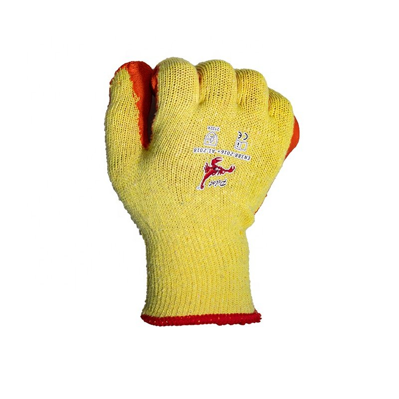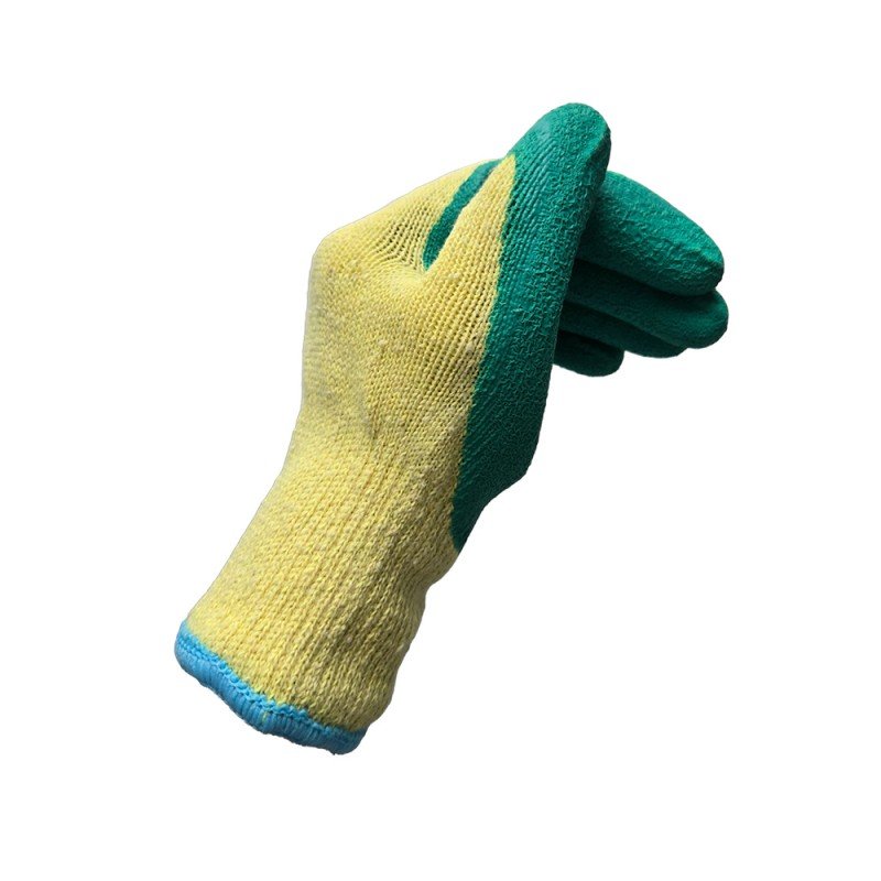 Crinkled latex palm coating provides reliable traction and secure handling of dry tools and materials.
