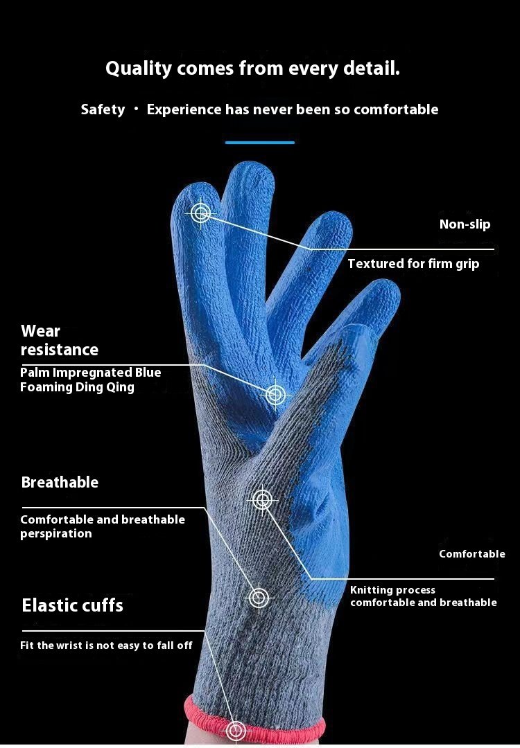 Latex palm coating offers enhanced wear resistance in high-friction areas.