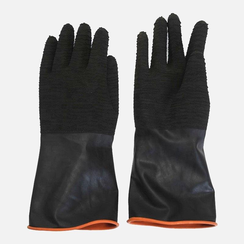 Heavy-duty latex construction provides superior resistance to abrasion, punctures, and chemicals