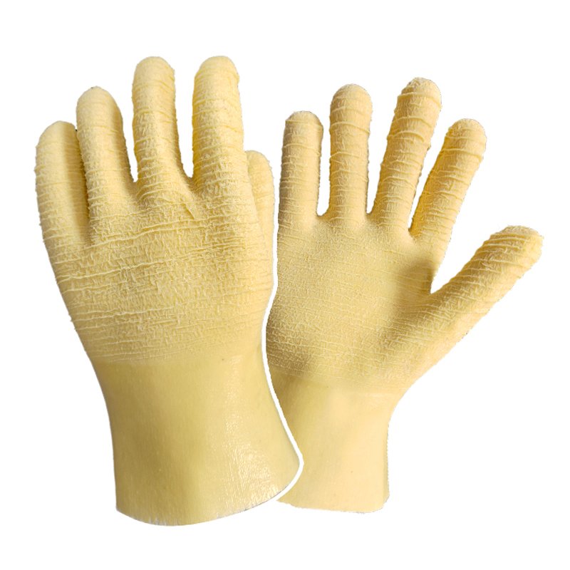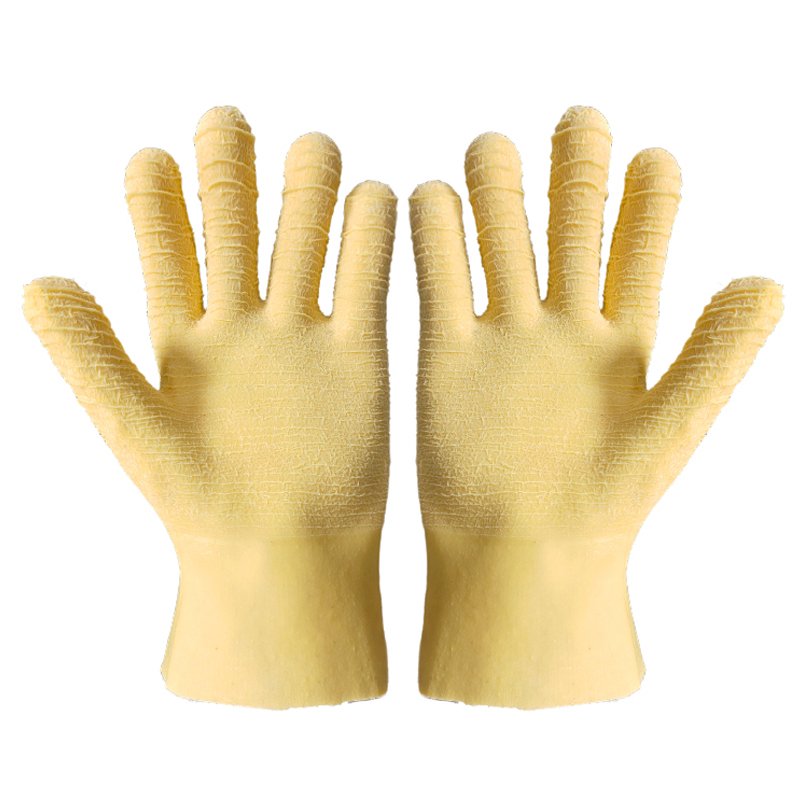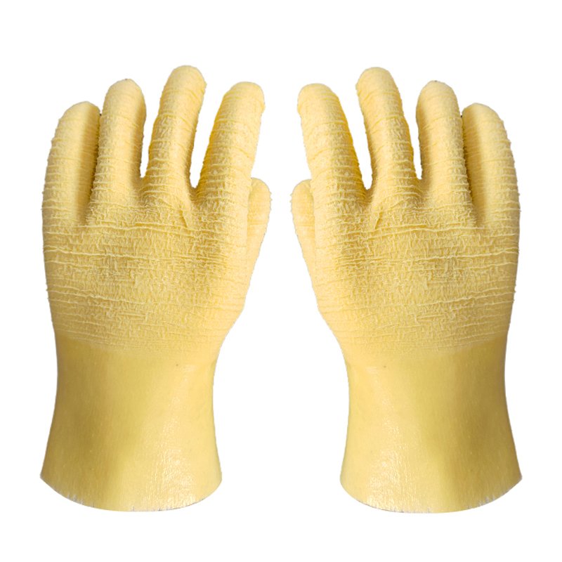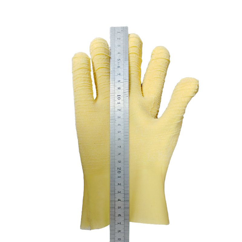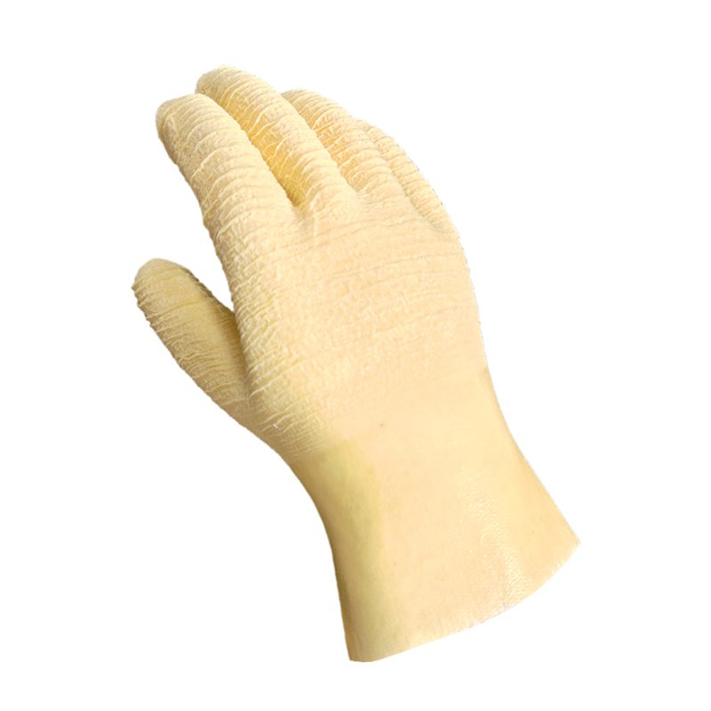 The crinkled latex surface is built to withstand wear and tear from rough materials, extending the glove’s service life.