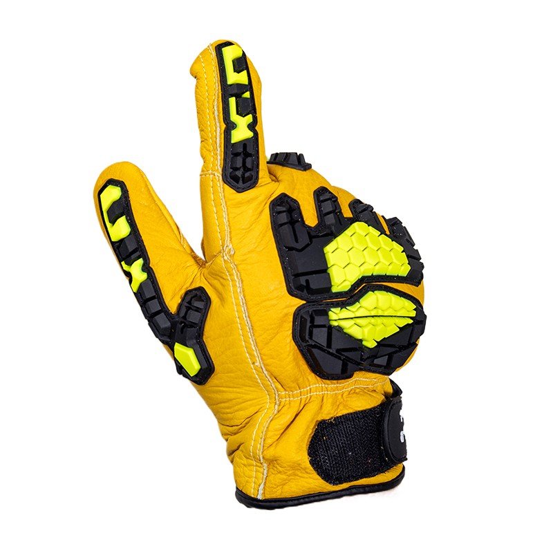 Strategic TPR (Thermoplastic Rubber) material on the back and fingers provides reliable defense against impacts and crushing hazards.