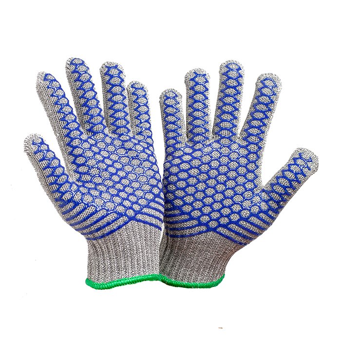 Strategic silicon crisscross pattern ensures multi-directional traction and secure handling of slippery materials.